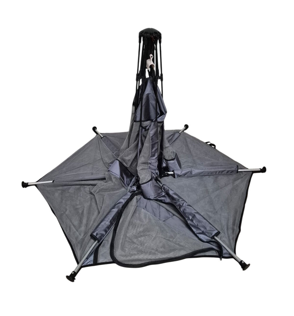 Set uključuje ogradu, podlogu, krovne i šatorske klinove za pričvršćivanje ogradice za tlo. Krov je izrađen od vodoodbojnog poliestera sa zaštitom od sunca UPF30. Sklopivi jastuk je debljine 2 cm i izrađen je od poliesterskog tafta. Uključeni su praktični koferi za odlaganje krova i jastuka.