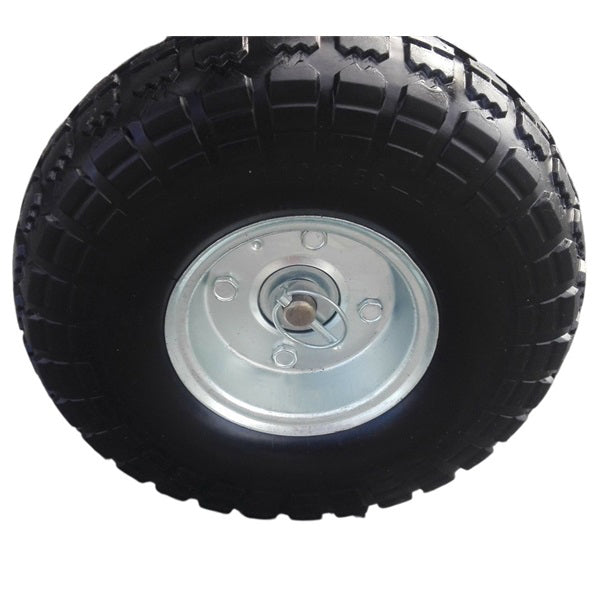 Prikolica ima velike, pune gumene kotače, što olakšava vuču. Gume su otporne na probijanje